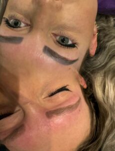Er wordt altijd rond moedervlekken heen gewerkt. De kleinere moedervlekken maken we van tevoren met een wit oogpotlood lichter zodat het licht zoveel mogelijk wordt weg gekaatst als we er toch overheen moeten werken.